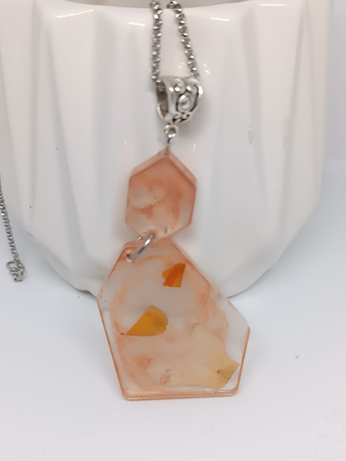 Materiale: Petale de trandafir natural, rășină epoxidică de înaltă calitate și un lănțișor rezistent din oțel inoxidabil, un material hipoalergenic ce nu își schimbă culoarea în timp.