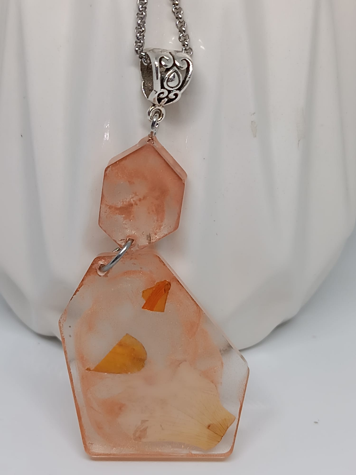 Realizat manual: Fiecare pandantiv este unicat, reflectând frumusețea naturală a florilor și atenția la detalii a creatorului.