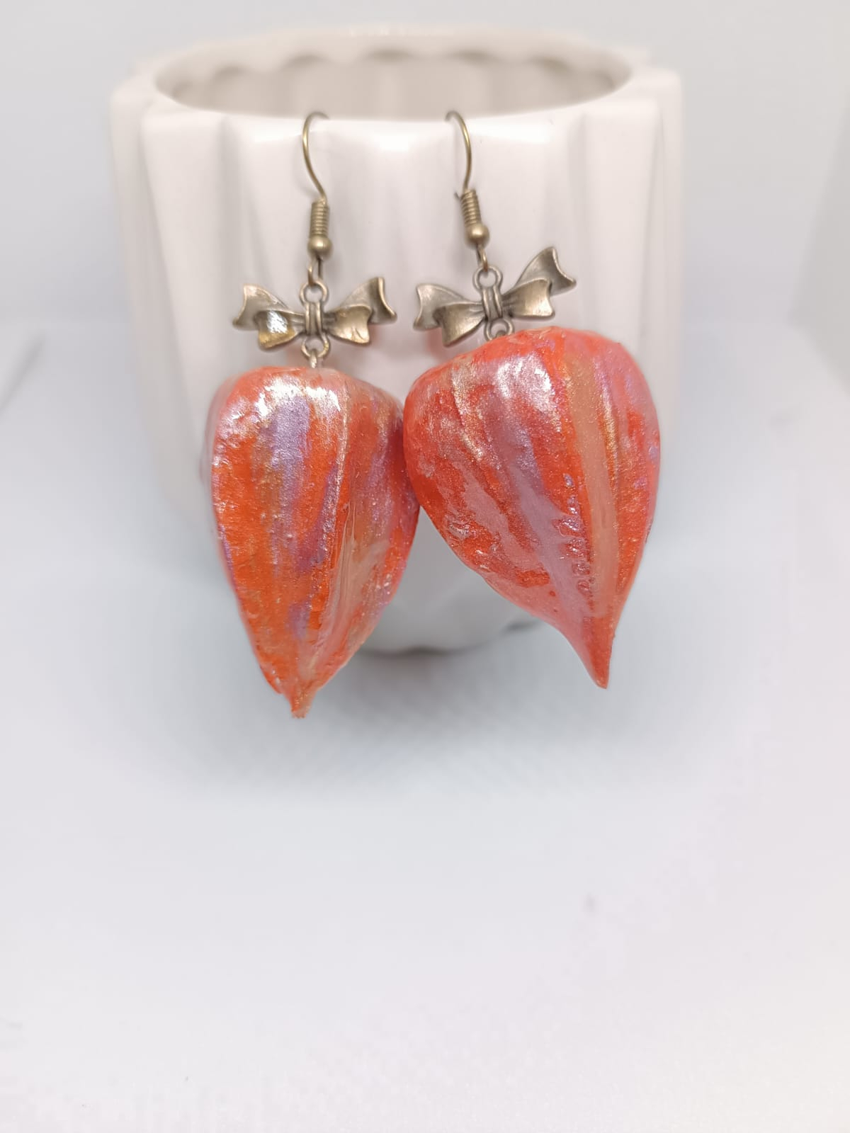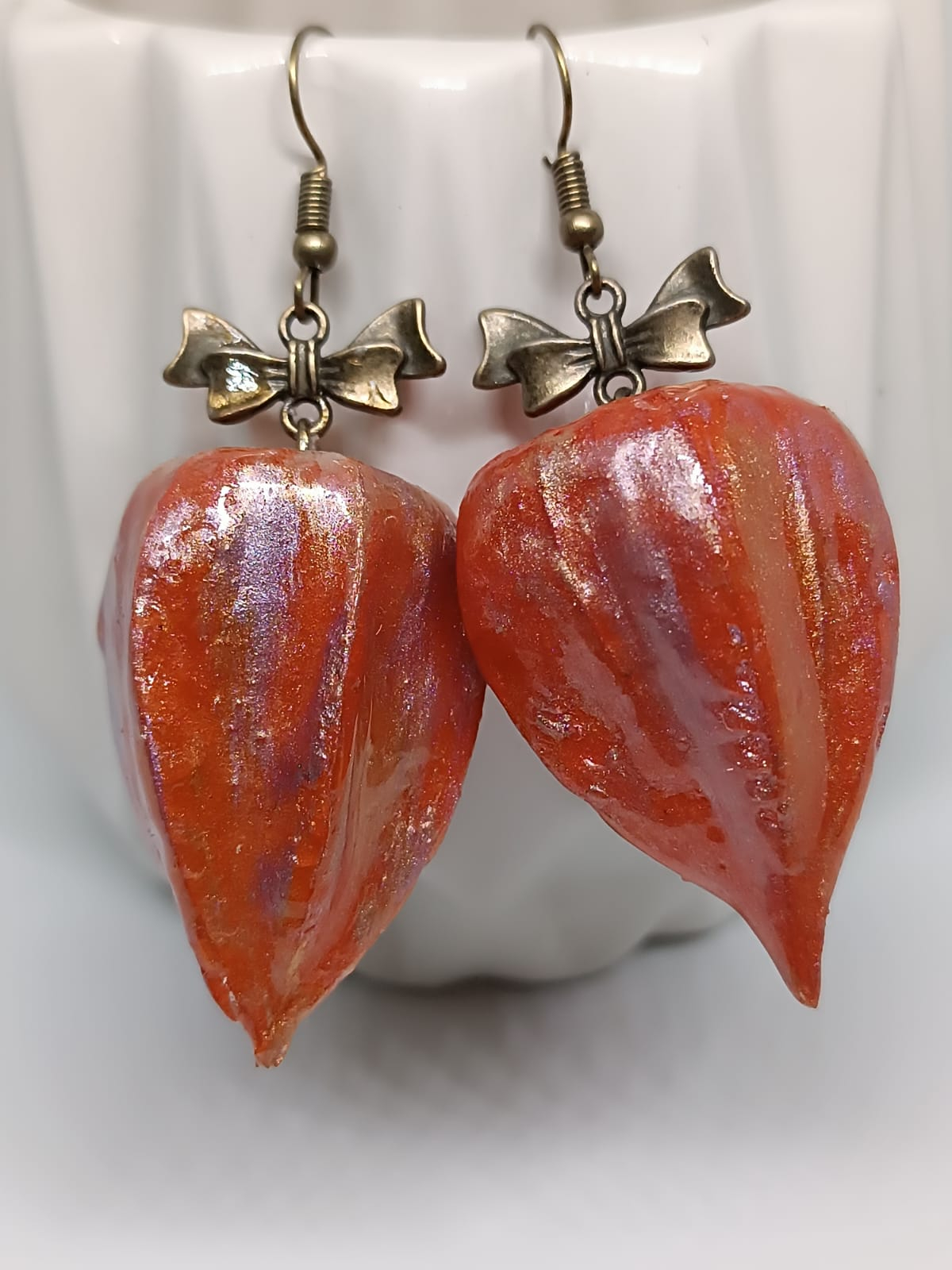 • Design Unic: Fiecare pereche de cercei este unică, având lampionul de Physalis încapsulat în rășină epoxidică pentru a-i evidenția forma și culoarea.
